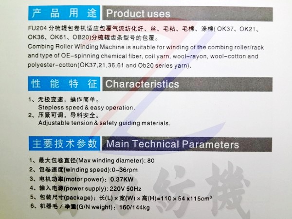 FU204型分梳輥包卷機的產品詳細介紹: